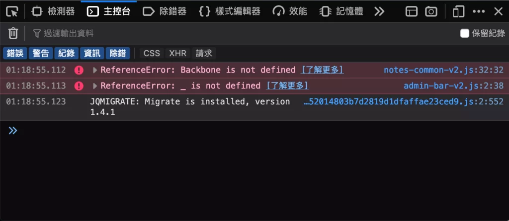 To solve this problem, we could exclude Backbone.js and underscore.js from autoptimize.
