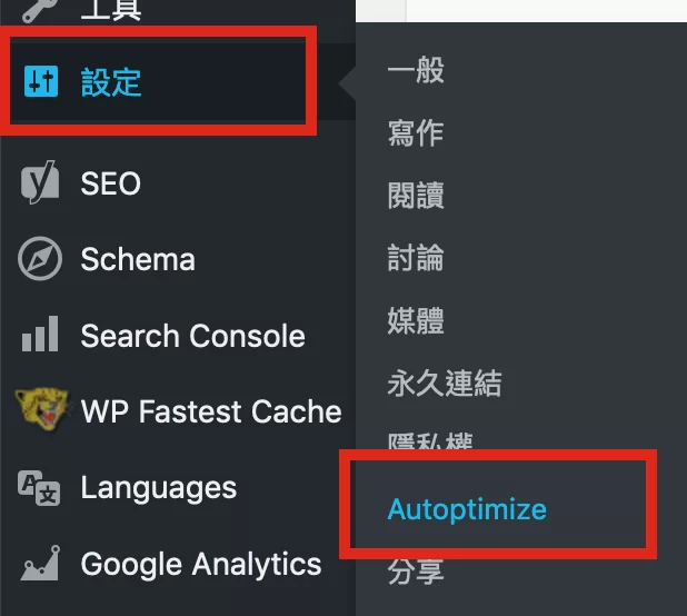 Admin Sidenav > Setting > Autoptimize