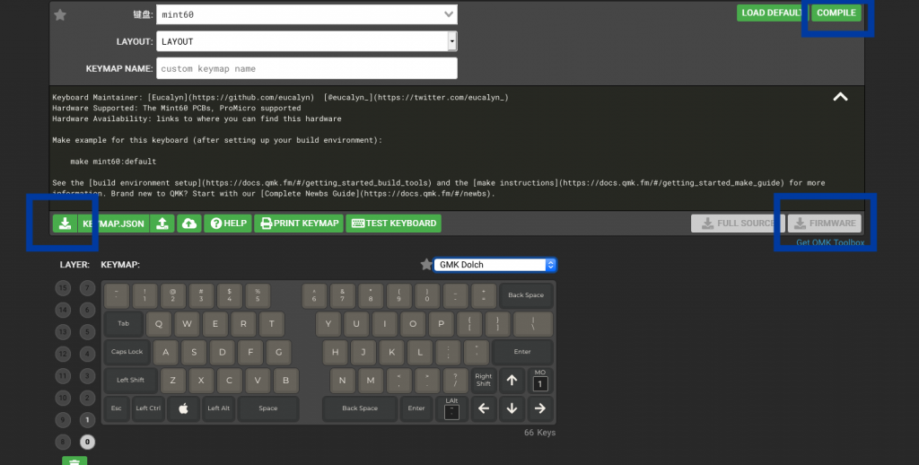 First, we need to setup a new keymap we want, just go to QMK Configurator, to start to modify it. While finishing, compile it & download both keymap.json and firmware.