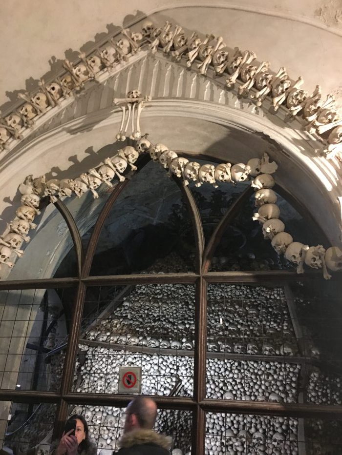 買完票之後去人骨教堂,教堂真的不大,簡單地每個人骨藝術品都瀏覽過後,就出去繞著教堂散步一圈,他們的墳墓樣式種類非常多,印象中沒看到重複的。