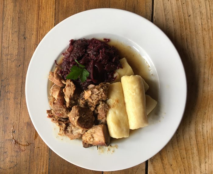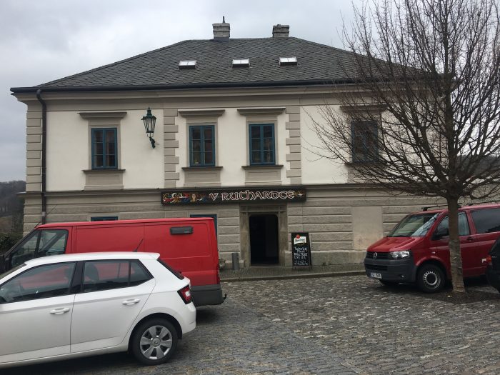 當機立斷前往 TripAdvisor 上第二名的 Restaurace V Ruthardce,幸好人不多,還有得吃,不然真的不知道該怎麼辦。而且以為原本想坐的位置都被預定(好幾張桌子上都寫著 reserved),問了以後才知道保留的是晚上六點多的,所以我們就安心坐下開始點餐。