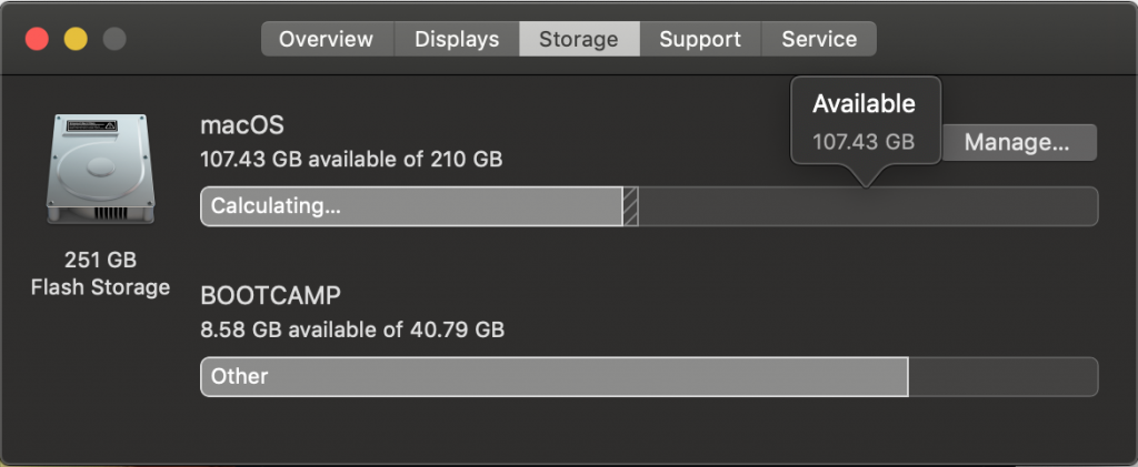 會出現這個問題似乎是因為 MacOS 在刪除檔案後所釋出的空間並非真正可立刻使用的空間,只是 UI 上為了讓使用者知道自己總共可以使用的空間數,才會產生這個「我明明空間就夠,為什麼不給我安裝」的狀況。