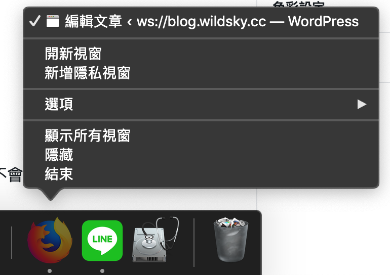 或是在 Dock 上按右鍵,選「結束」也有同樣的作用。